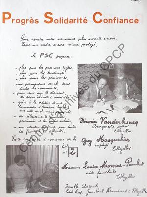 Imprimé électoral de candidats PSC de Ellezelles réalisé à l'occasion des élections communales du 10 octobre 1976.