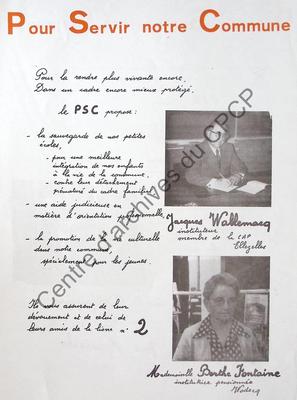 Imprimé électoral de candidats PSC de Ellezelles réalisé à l'occasion des élections communales du 10 octobre 1976.