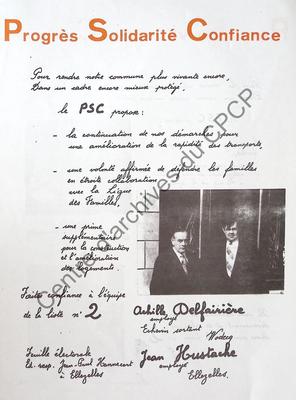 Imprimé électoral de candidats PSC de Ellezelles réalisé à l'occasion des élections communales du 10 octobre 1976.