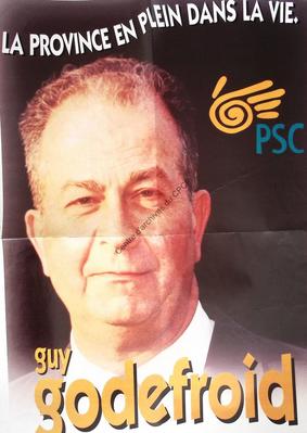 Affiche électorale du candidat de Soignies Guy Godefroid réalisée dans le cadre des élections communales et provinciales du 8 octobre 2000.