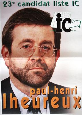 Affiche électorale du candidat IC (tendance PSC) de Soignies Paul-Henri Lheureux réalisée dans le cadre des élections communales et provinciales du 8 octobre 2000.