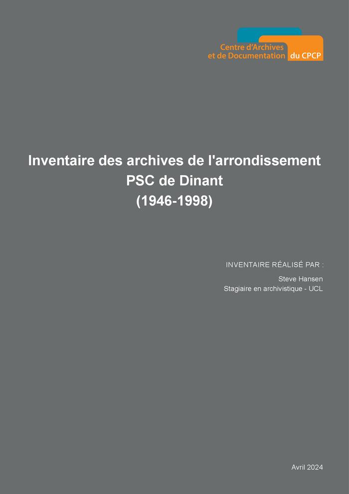 En août 1988, le secrétariat général du PSC confia son patrimoine archivistique au service des archives du Centre de Perfectionnement des Cadres Politiques (CPCP), devenu Centre Permanent pour la Citoyenneté et la Participation (CPCP) en 1992. Dans ce versement, on y trouva notamment des archives relatives à l'arrondissement PSC de Dinant.