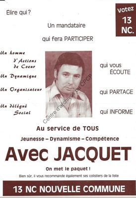 Imprimé électoral du candidat PSC dinantais Pol Jacquet réalisé à l'occasion des élections communales du 10 octobre 1976.