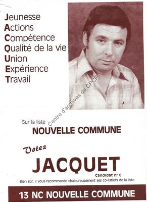 Imprimé électoral du candidat PSC dinantais Pol Jacquet réalisé à l'occasion des élections communales du 10 octobre 1976.