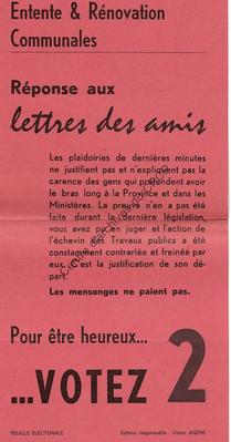 Imprimé électoral du PSC réalisé à l'occasion des élections communales du 10 octobre 1976.