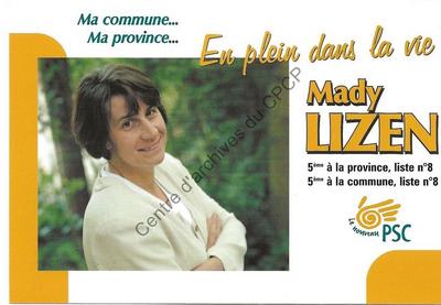 Imprimé électoral de la candidate PSC de Durbuy Mady Lizen réalisé à l'occasion des élections communales et provinciales du 8 octobre 2000.