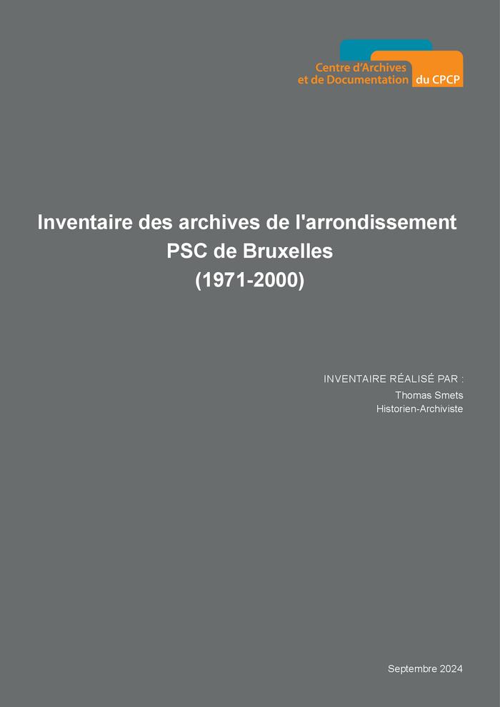Le fonds de l'arrondissement PSC de Bruxelles est constitué d’archives qui étaient conservées dans les caves de l'ancien siège du PSC au n°45 de la rue des Deux-Églises. Celles-ci ont été transférées au sein de la nouvelle implantation du centre d'archives du CPCP à Louvain-la-Neuve où elles ont été inventoriées.