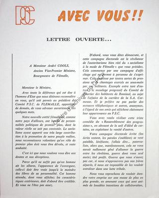 Imprimé électoral de la liste PSC de Flémalle réalisé à l'occasion des élections communales du 10 octobre 1976.