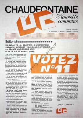 Imprimé électoral de la liste Union Communale (tendance PSC) de Chaudfontaine réalisé à l'occasion des élections communales du 10 octobre 1976.