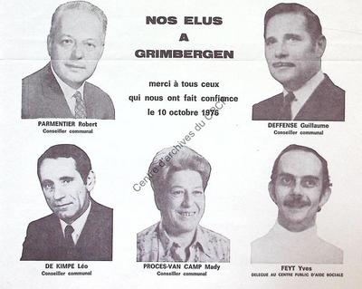 Imprimé électoral de remerciements de membres du PSC de Grimbergen réalisé à l'occasion des élections communales du 10 octobre 1976.