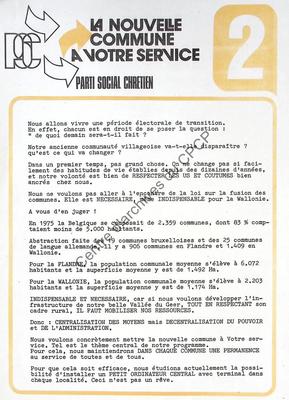 Imprimé électoral de la liste PSC de Bassenge réalisé à l'occasion des élections communales du 10 octobre 1976.