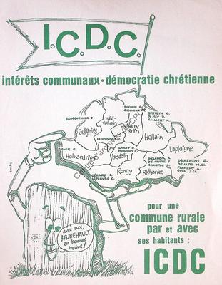 Imprimé électoral de la liste Intérêts Communaux-Démocratie Chrétienne (ICDC) réalisé à l'occasion des élections communales du 10 octobre 1976 à Brunehaut.