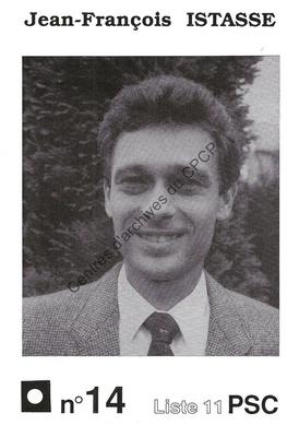 Imprimé électoral du candidat PSC Jean-François Istasse réalisé à l'occasion des élections communales du 9 octobre 1988 à Namur.