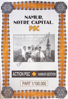Imprimé électoral de la liste PSC de Namur réalisé à l'occasion des élections communales du 9 octobre 1988.