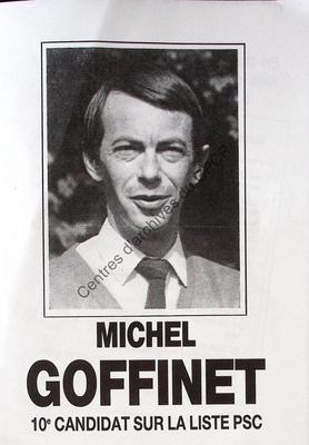 Imprimé électoral du candidat PSC Michel Goffinet réalisé à l'occasion des élections communales du 9 octobre 1988 à Namur.