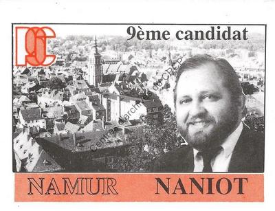 Imprimé électoral du candidat PSC Pierre Nanniot réalisé à l'occasion des élections communales du 9 octobre 1988 à Namur.