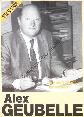 Imprimé électoral du candidat PSC Alex Geubelle réalisé à l'occasion des élections communales du 9 octobre 1988 à Namur.
