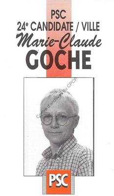 Imprimé électoral du candidat PSC Marie-Claude Goche réalisé à l'occasion des élections communales du 9 octobre 1994 à Namur.