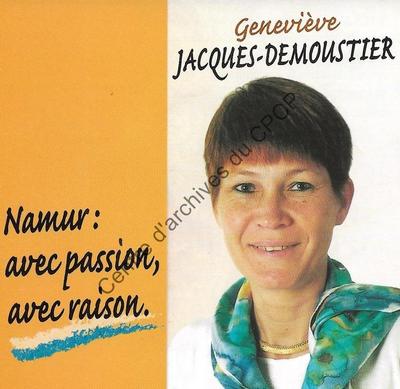 Imprimé électoral de la candidate de la liste PSC-ICN Geneviève Jacques-Demoustier réalisé à l'occasion des élections communales du 8 octobre 2000 à Namur.