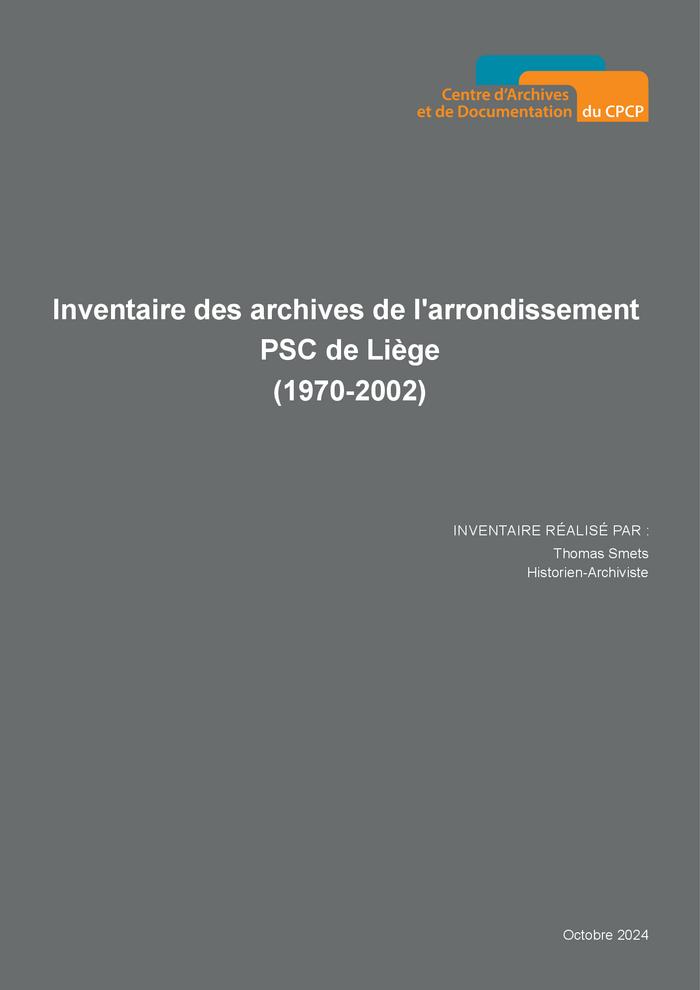 Le fonds de l'arrondissement PSC de Liège est constitué d’archives qui étaient conservées dans les caves de l'ancien siège du PSC au n°45 de la rue des Deux-Églises. Celles-ci ont été transférées au sein de la nouvelle implantation du centre d'archives du CPCP à Louvain-la-Neuve où elles ont été inventoriées.