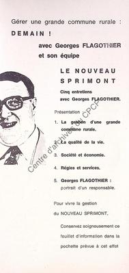 Imprimé électoral du bourgmestre PSC de Sprimont Georges Flagothier réalisé à l'occasion des élections communales du 10 octobre 1976.