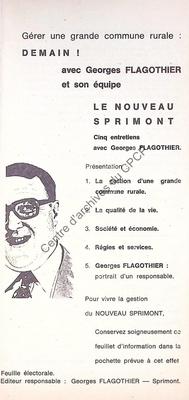 Imprimé électoral du bourgmestre PSC de Sprimont Georges Flagothier réalisé à l'occasion des élections communales du 10 octobre 1976.