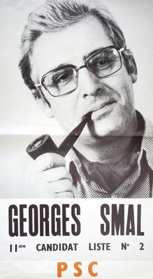 Affiche électorale du candidat PSC namurois Georges Smal réalisée dans le cadre des élections communales du 10 octobre 1976.