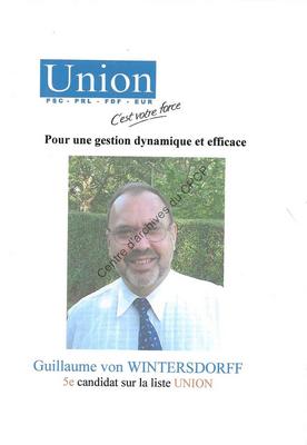 Imprimé électoral du conseiller communal PSC Guillaume Von Wintersdorff, membre de la liste