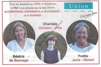 (PSC-PRL-FDF-EUR) à Kraainem réalisé à l'occasion des élections communales et provinciales du 8 octobre 2000.