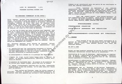 à Kraainem, dont faisait partie le PSC, réalisé à l'occasion des élections communales du 9 octobre 1994.