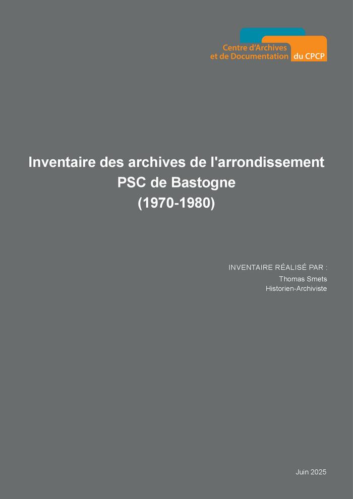 Le fonds de l'arrondissement PSC de Bastogne est constitué d’archives qui étaient conservées dans les caves de l'ancien siège du PSC au n°45 de la rue des Deux-Églises. Celles-ci ont été transférées au sein de la nouvelle implantation du centre d'archives du CPCP à Louvain-la-Neuve où elles ont été inventoriées.