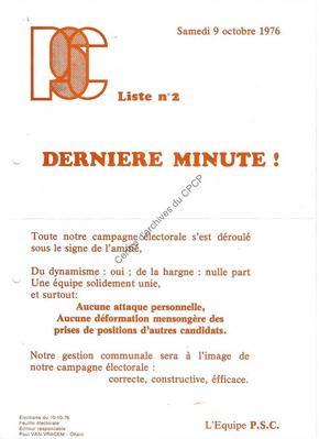 Imprimé électoral du PSC de Lasne réalisé à l'occasion des élections communales du 10 octobre 1976.