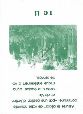 Imprimé électoral de la liste Intérêt Communal (tendance PSC) de Remicourt réalisé à l'occasion des élections communales du 10 octobre 1976.