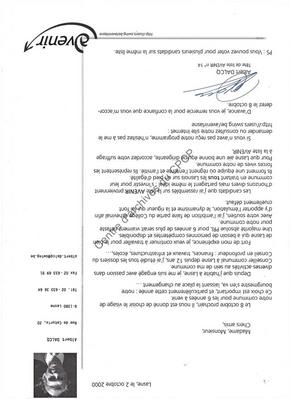 Imprimé électoral du candidat PSC Albert Dalcq réalisé à l'occasion des élections communales et provinciales du 8 octobre 2000.