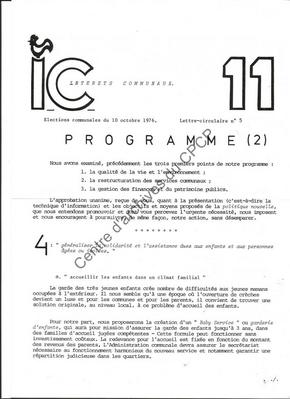 Imprimé électoral de la liste Intérêts Communaux (incluant des candidats PSC) de Frameries réalisé à l'occasion des élections communales du 10 octobre 1976.
