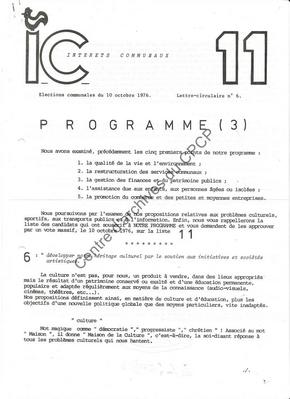 Imprimé électoral de la liste Intérêts Communaux (incluant des candidats PSC) de Frameries réalisé à l'occasion des élections communales du 10 octobre 1976.