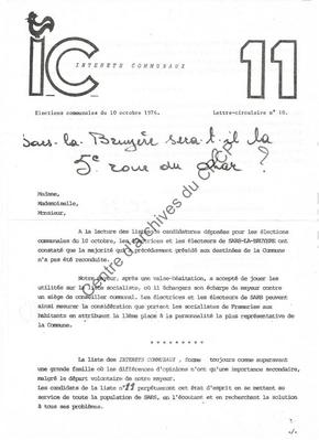Imprimé électoral de la liste Intérêts Communaux (incluant des candidats PSC) de Frameries réalisé à l'occasion des élections communales du 10 octobre 1976.