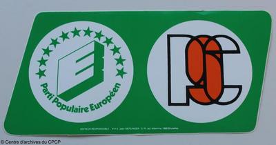 Autocollants verts avec les logos du PSC et du PPE, créés dans le cadre de la campagne pour les élections européennes du 10 juin 1979