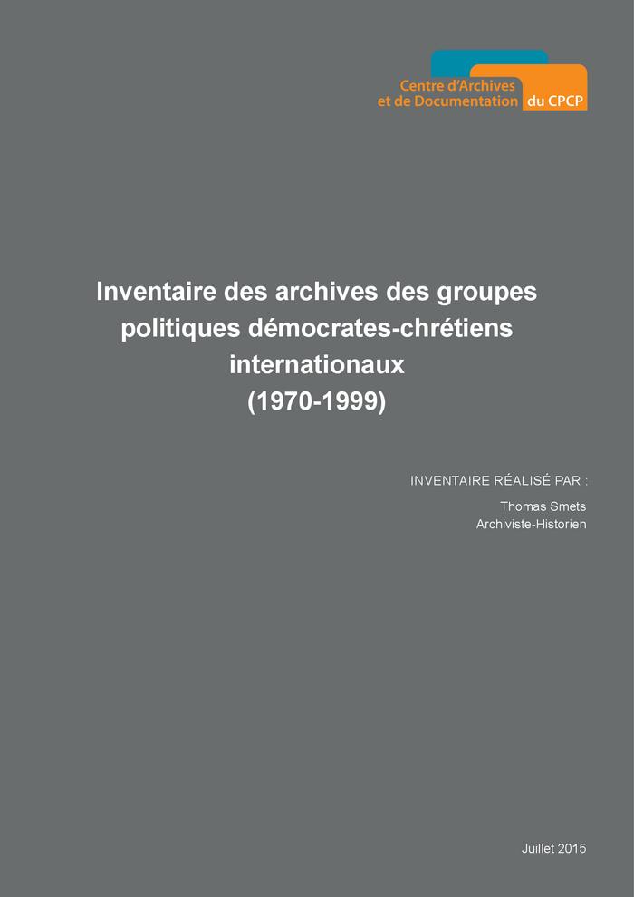 Ce fonds se compose de documents s’étalant sur une période allant de 1970 à 1999. La majorité des documents d’archives concernent les réunions des grandes structures décisionnelles des différents groupes politiques démocrates-chrétiens internationaux (Congrès, Comités politiques, Bureaux politiques…) et par conséquent les documents qui y sont attachés (Procès-verbaux, notes, rapports, documents de travail…). Par ailleurs, dans le cas du PPE et de l’UEDC, on retrouve des documents d’archives en lien avec des groupes de travail, des colloques et des journées d’études.