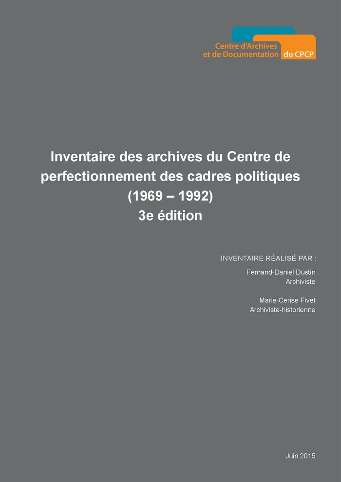 Après triage, divers documents relatifs à l'objet social du Centre de perfectionnement des cadres politiques ou d'associations socio-politiques furent reconstitués.