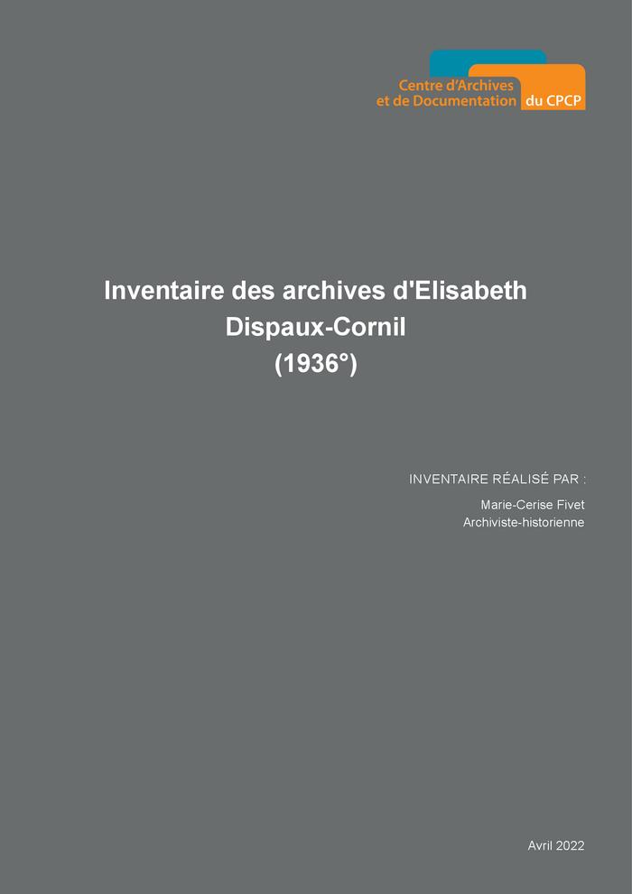 Les archives détaillées dans cet inventaire ont été conservées au domicile d’Élisabeth Dispaux-Cornil à Sombreffe jusqu’au 24 juin 2016, date à laquelle celles-ci ont été versées au centre d’archives et de documentation du CPCP suite à la signature d’une convention de don.