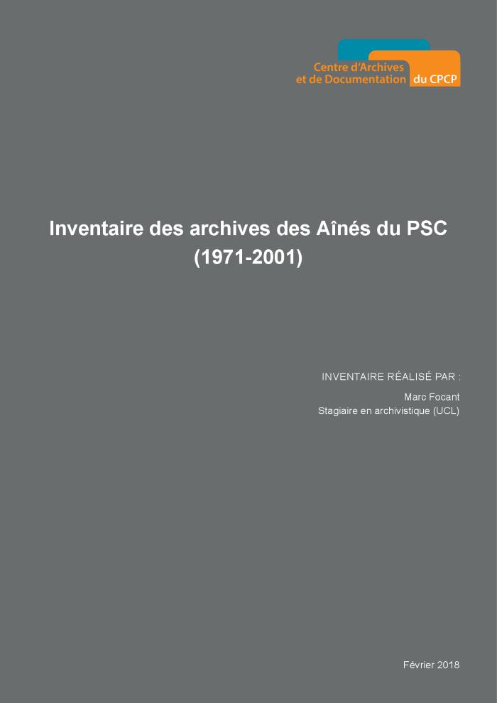 Les archives des Aînés du PSC ont été conservées au domicile d'Elisabeth Dispaux Cornil, ancienne présidente, à Sombreffe. Le 13 février 2013, les archivistes du CAD ont pris en charge ces archives suite à la signature d’une convention de don.