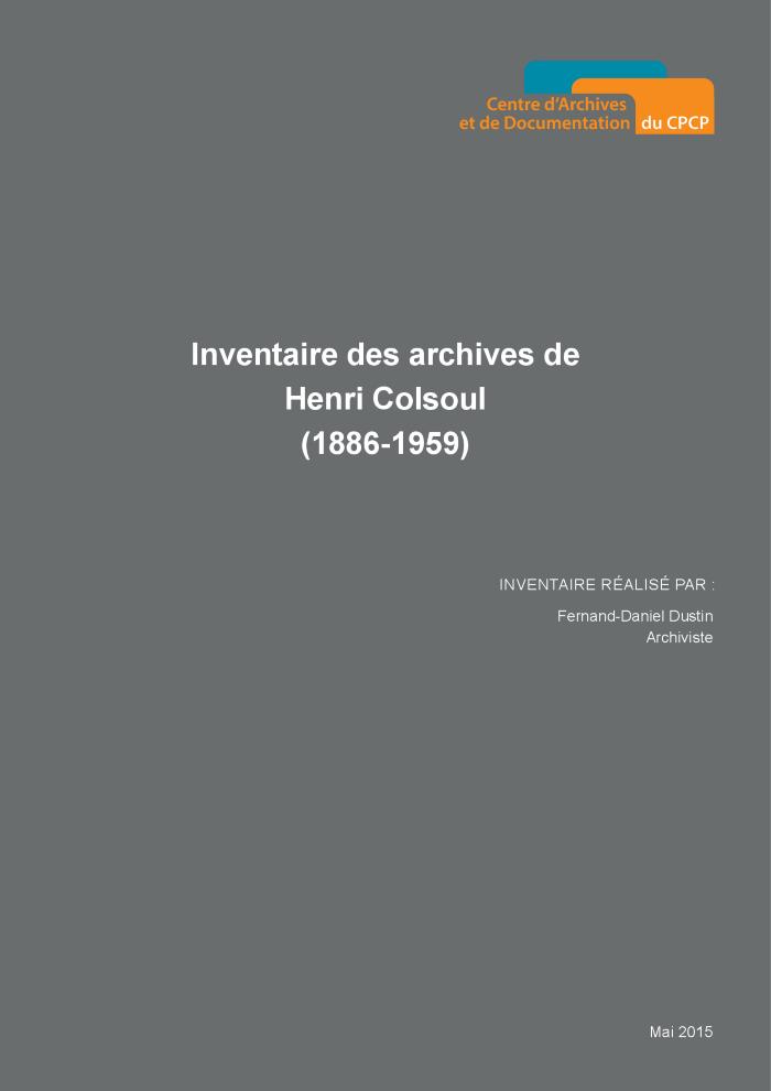Le 24 mai 1991, Jacqueline Colsoul a déposé au Centre d'Archives et de Documentation du Centre Permanent pour la Citoyenneté et la Participation (CPCP) un lot de documents qu'elle avait retrouvé dans des affaires ayant appartenu à son père, Henri Colsoul.