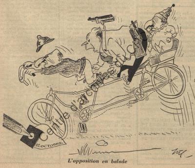 Caricature réalisée par Pil et publiée le 11 octobre 1952 dans le périodique officiel du PSC-CVP Temps Nouveaux.